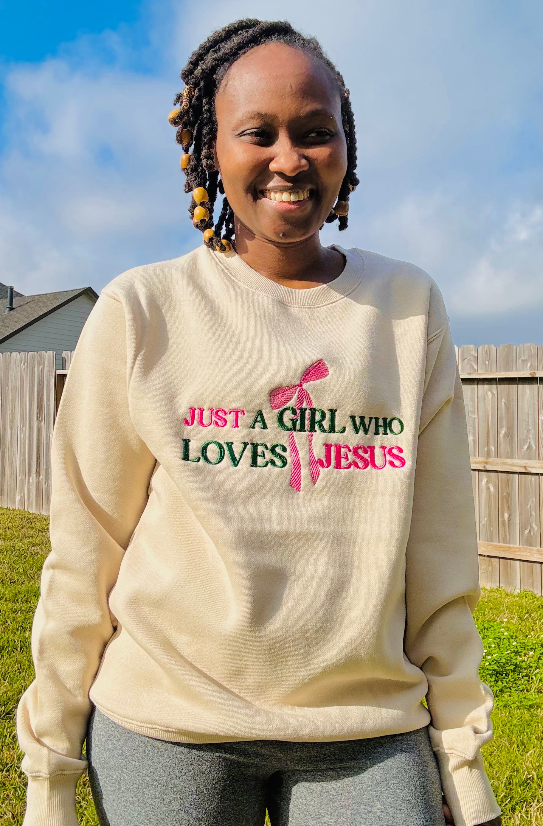 Just a Girl Who Loves Jesus - Embroidered Sweatshirt