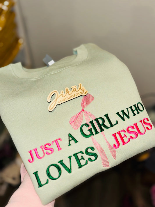 Just a Girl Who Loves Jesus - Embroidered Sweatshirt