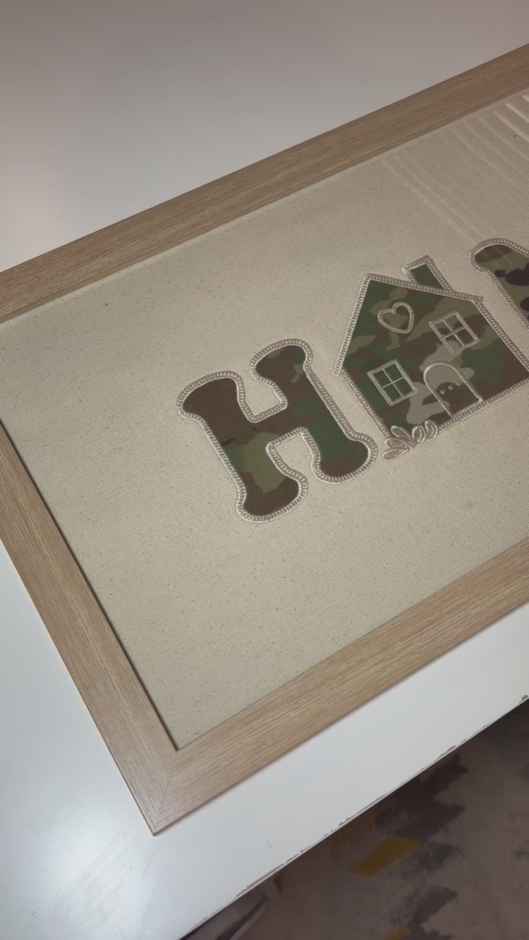 HOME is a framed textile keepsake created from garments that hold meaning — baby clothes, family shirts, or pieces worn by loved ones. Each piece is thoughtfully arranged and stitched into a timeless design that honors memory, family, and belonging.